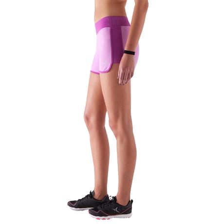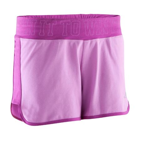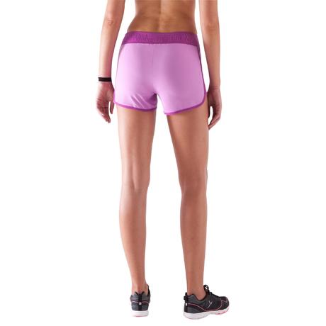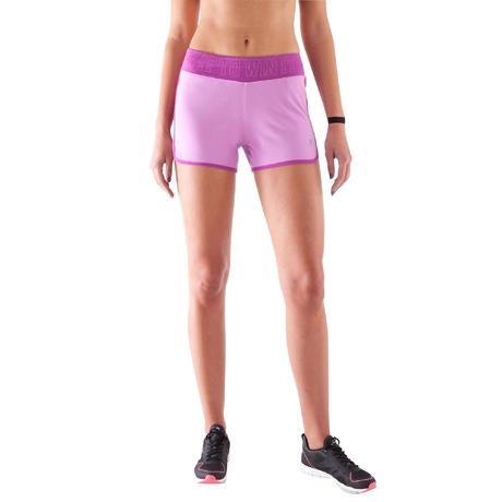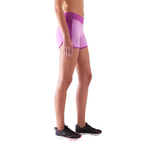 Calções Fitness mulher malva cintura contrastada rosa escuro estampado