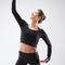 Crop-top Manga Curta de Dança Moderna Preto Mulher