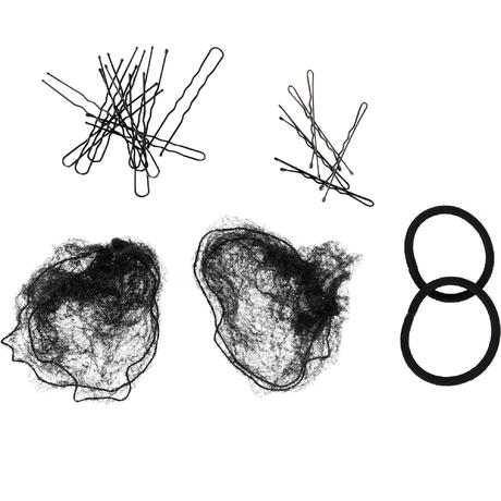 Es un kit bastante completo que incluye todo lo que necesitas para recoger bien el pelo, lleva dos gomas que sujetan bastante bien, ganchos cerrados, horquillas suficientes y dos redecillas. Las redecillas son bastante grandes por lo que van muy bien para pelo largo, pero para pelo corto hay que dar muchas vueltas a la redecilla.