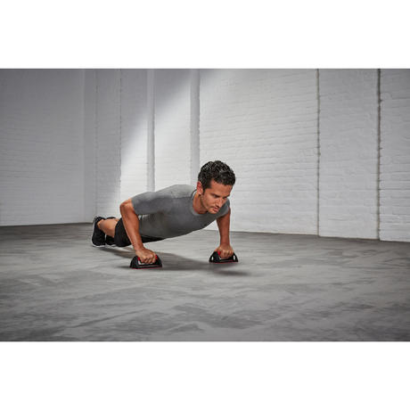 Pratique exercícios de flexões com o máximo conforto graças às pegas ergonómicas. Muito estáveis, para treinar em total segurança.