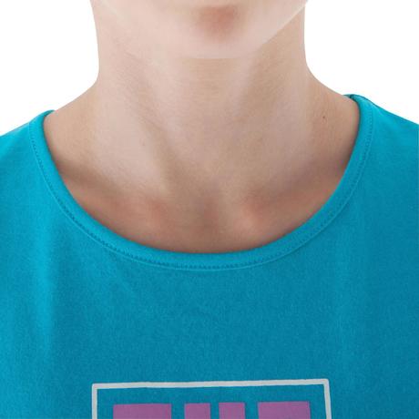 A mais simples e confortável das t-shirts... Irá desfrutar dela durante muito tempo, porque a Domyos garante a conservação da forma e das cores, com base em testes. Gola flexível para passar a cabeça.