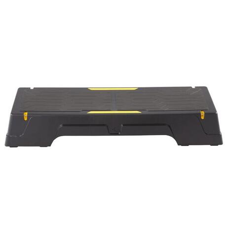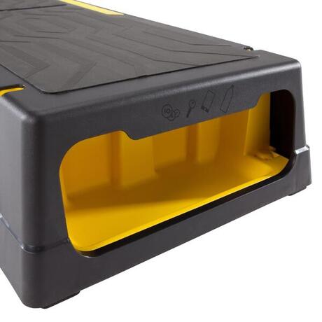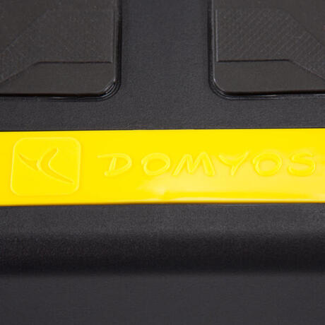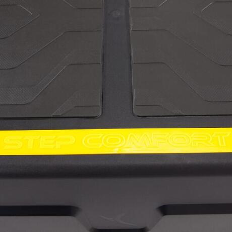 O step Comfort 2 em 1! Permite realizar o conjunto dos exercícios associados à prática do step coreografado mas também praticar treinos mais musculares (tipo Body Pump). Tem a possibilidade de fixar uns elásticos (vendidos separadamente) nos ganchos previstos para esse efeito. As arrumações laterais permitem armazenar chaves, toalhas, garrafas de água e de executar os exercícios em toda a liberdade!