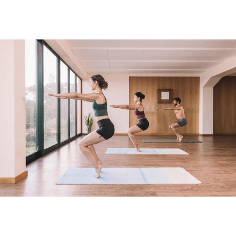 es muy fina, se adhiere perfectamente al suelo sin formar arrugas y es antideslizante, por lo que es muy cómoda para la práctica del yoga o body balance