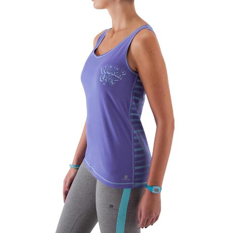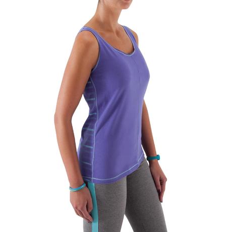 Top fitness mulher bicolor azul e azul às riscas